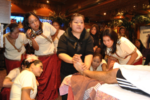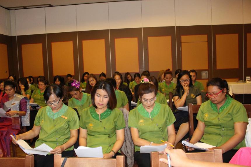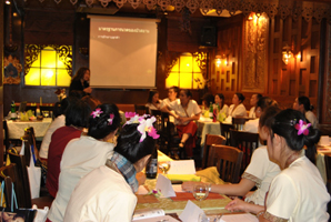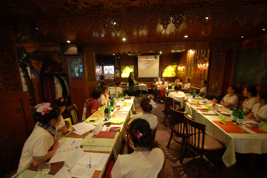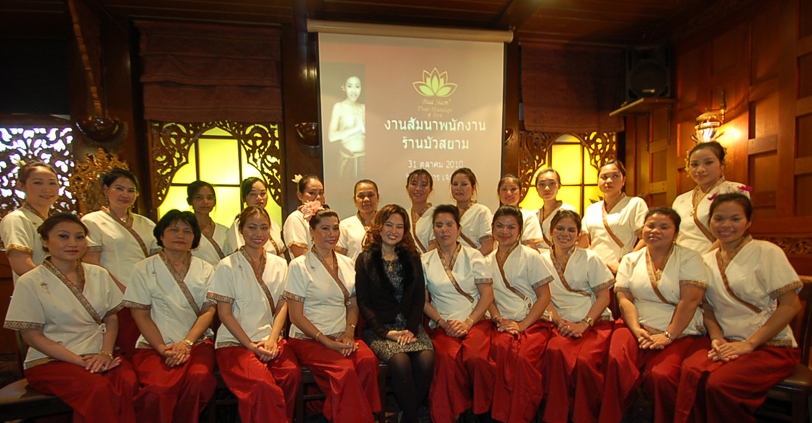 Zur Weiterbildung der Mitarbeiterinnen veranstaltete Bua Siam einen Workshop im Oktober 2010 mit Informationen zum Wellnessmarkt und praktischen Massageübungen.