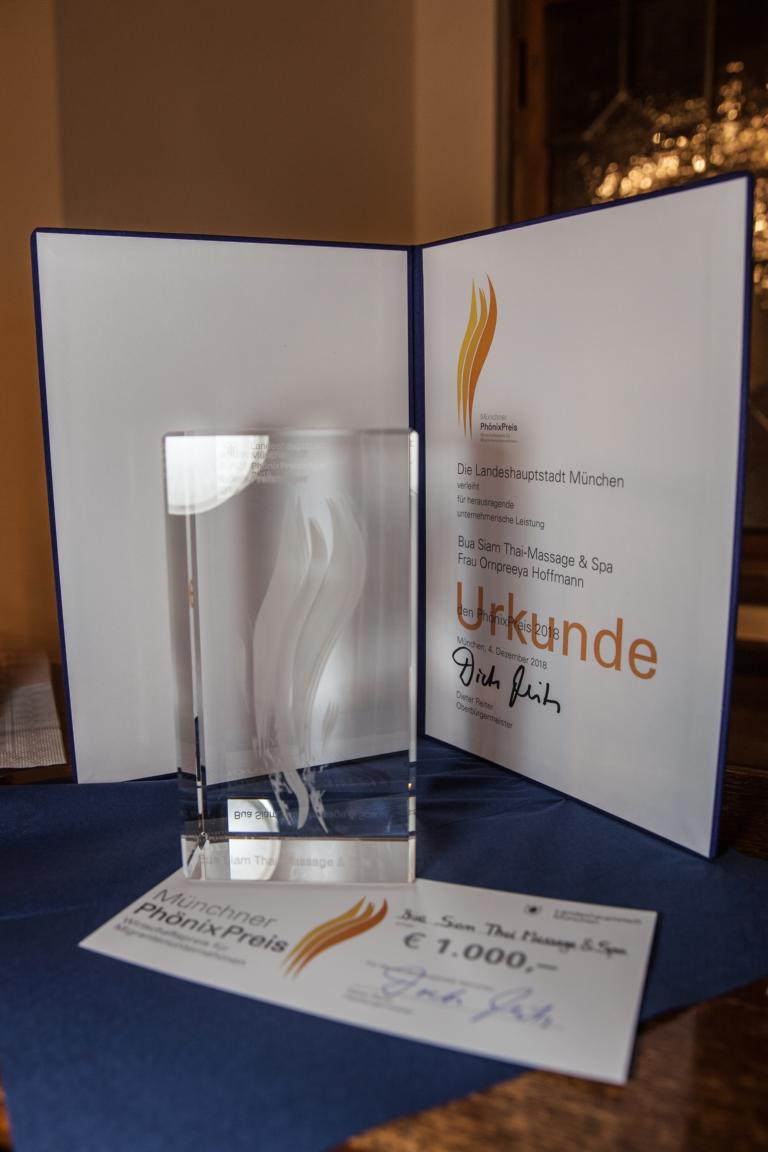 Bua Siam Thai-Massage & Spa erhielt den PhönixPreis 2018 von der Landeshauptstadt München.