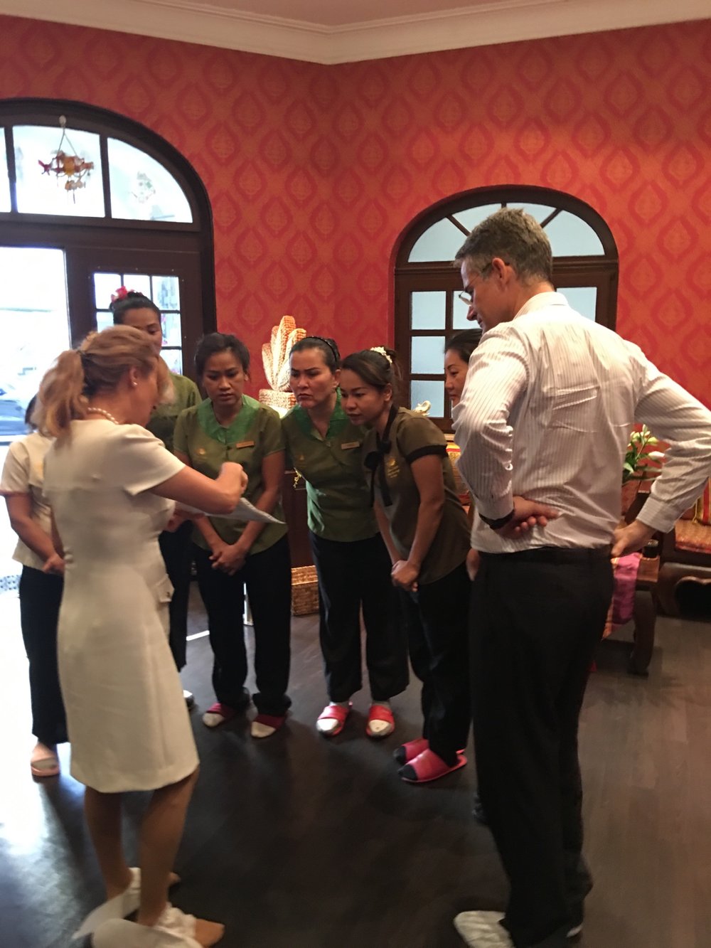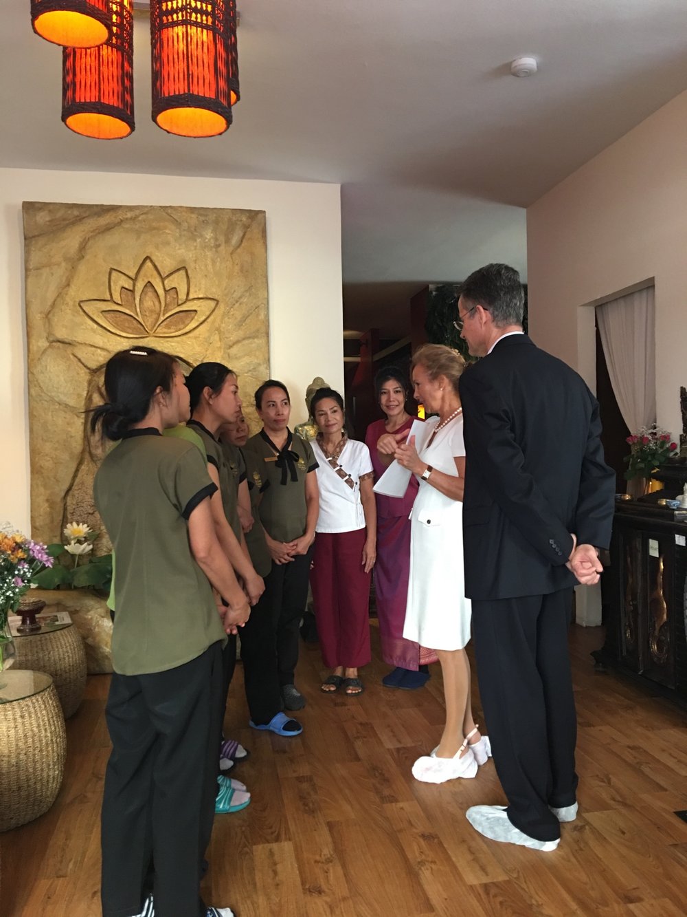 Der praktische Teil umfasste eine erste Inspektion der Studios durch eine Delegation der Thai Spa Vereinigung sowie eine abschließende Begutachtung des thailändisches Gesundheitsministeriums.