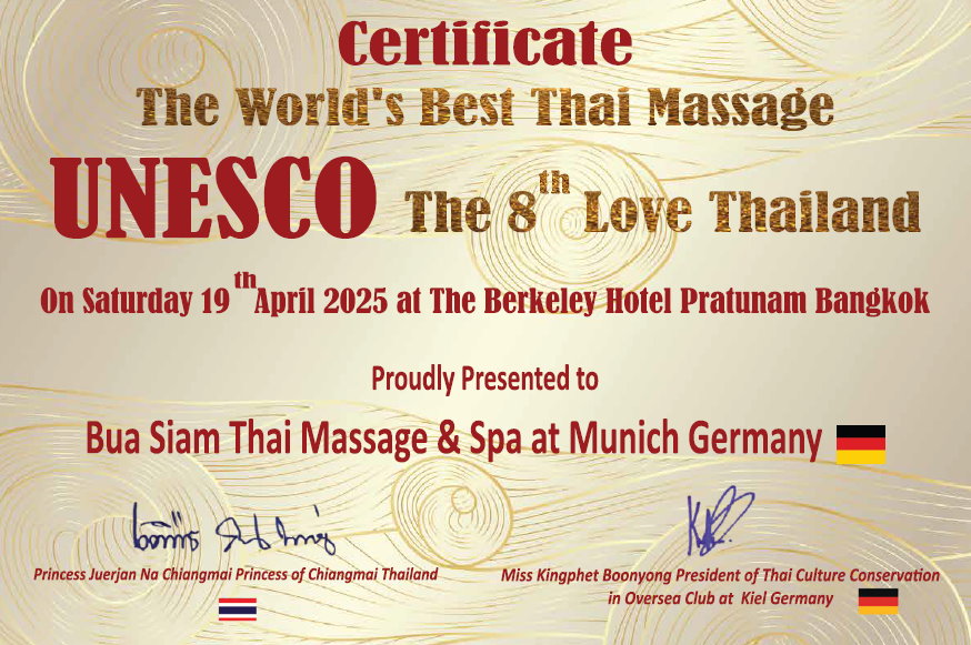 In diesem Rahmen erhielt "Bua Siam" im April 2025 in Bangkok eine Auszeichnung als weltweit anerkanntes Institut für Thai-Massage.